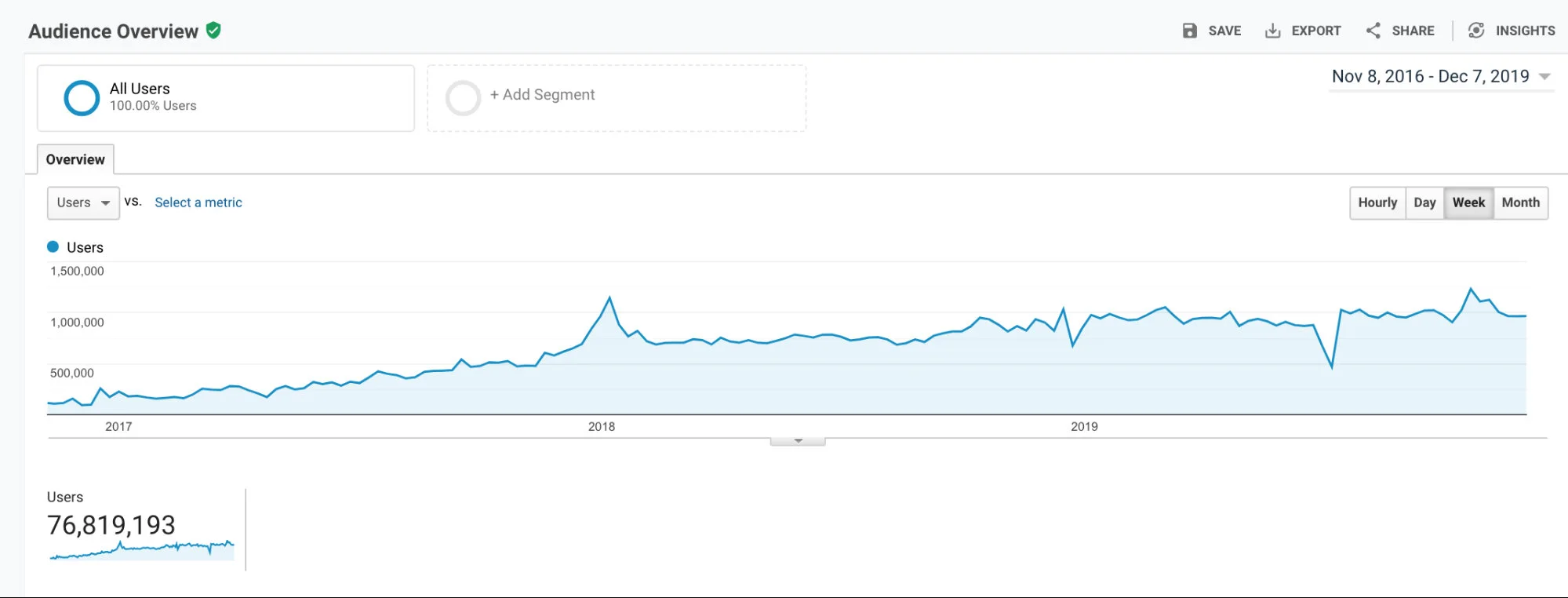 ≈ 76M+ people visited HackerNoon.com from Nov 8 2016 - Dec 7 2019