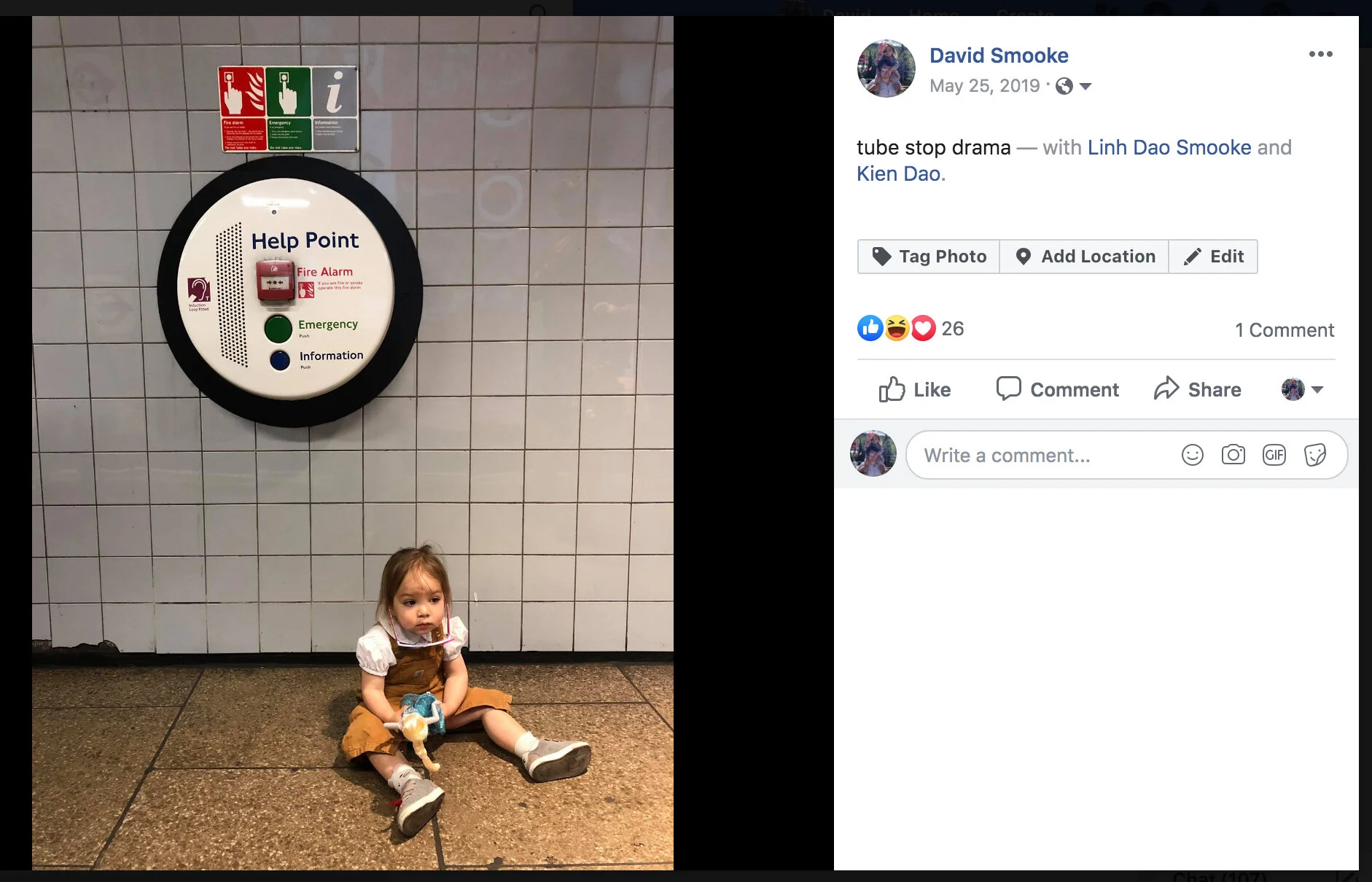 Pictured, my daughter after a temper tantrum at the tube stop.